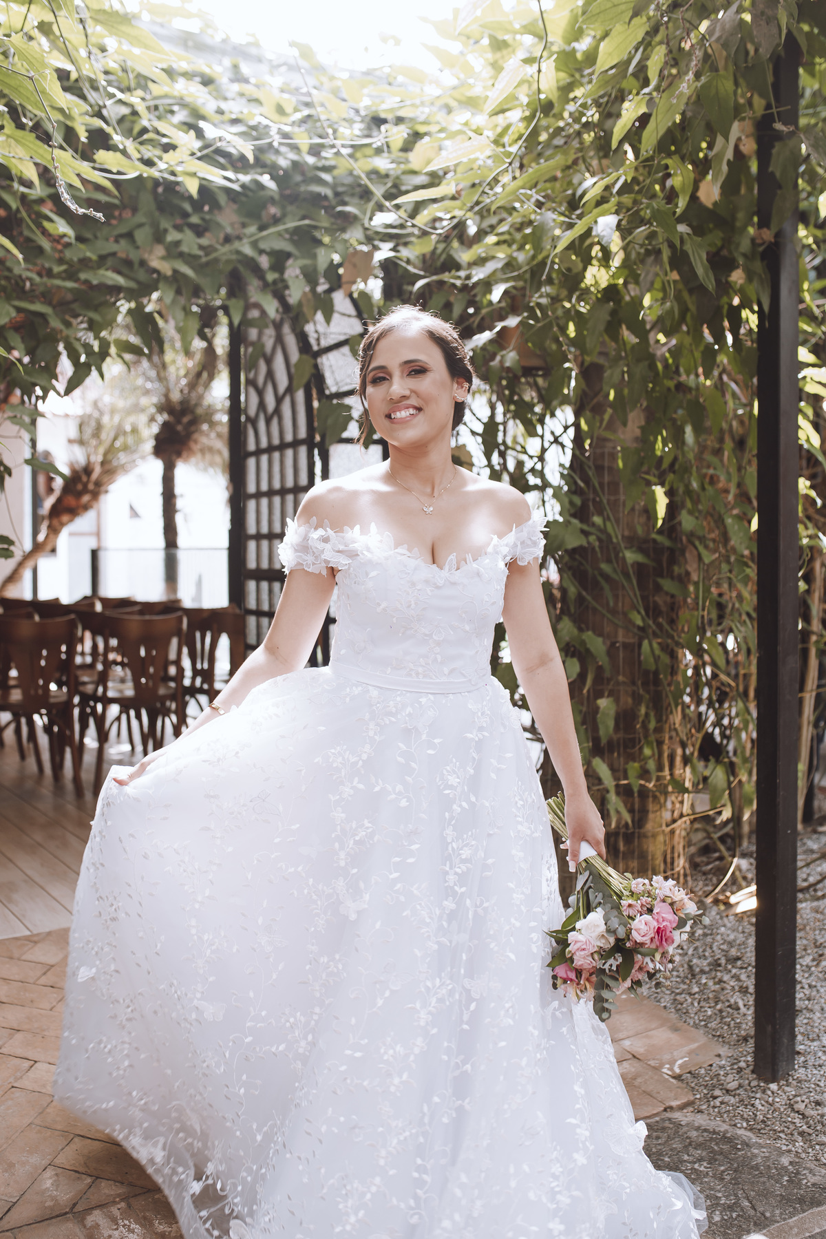 Fui madrinha e fotógrafa desse dia incrível. Minha entrega no casamento sempre me faz conhecer muitas “Priscillas”, uma delas é a amiga sensitiva, que sente a luz entrando pela janela e tocando a pele, o olhar apaixonado que vem da alma, o acalento do pai protetor entregando sua primogênita com segurança, pois sabe a veracidade do amor verdadeiro que está em sua frente. Um noivo extasiado com o dia que está finalmente vivendo, o riso frouxo, os olhos marejados, o beijo molhado guardado no canto da boca, a vibração de todas as cores criando danças com as inúmeras texturas.