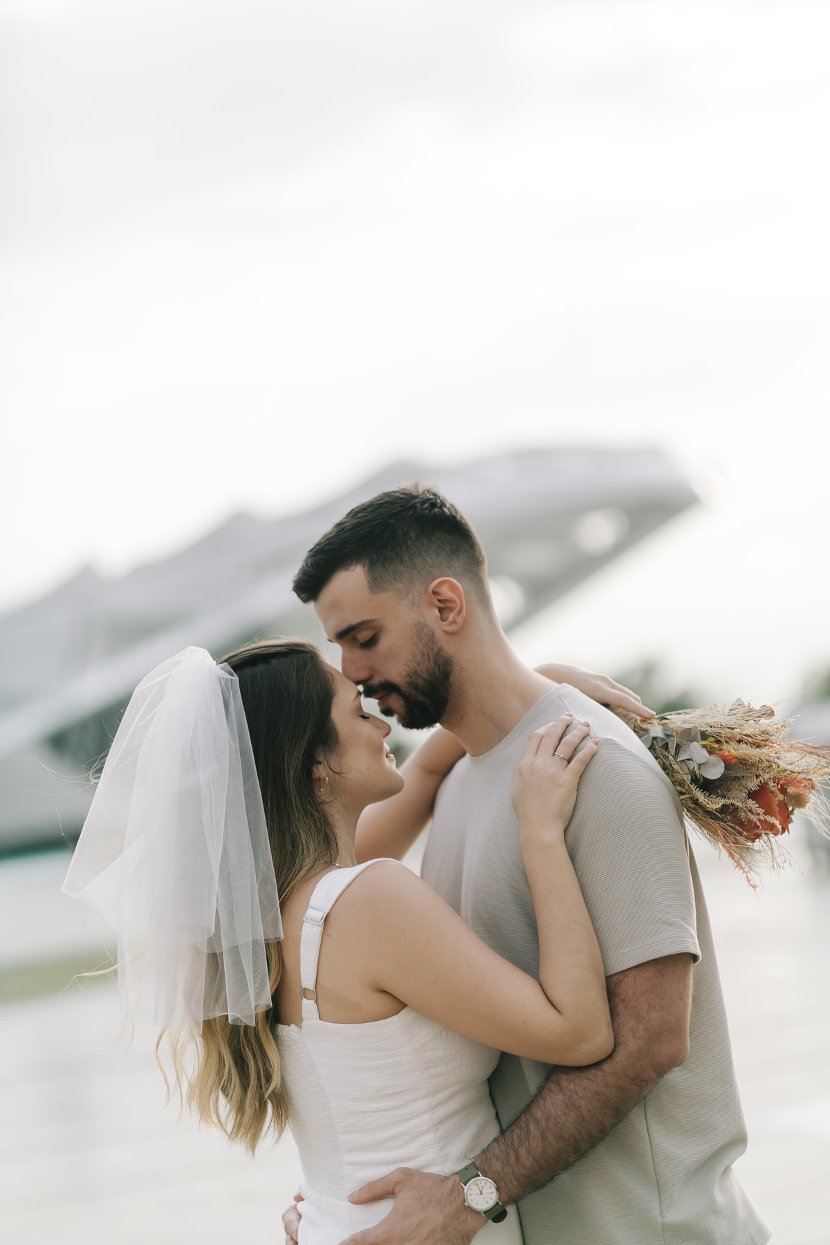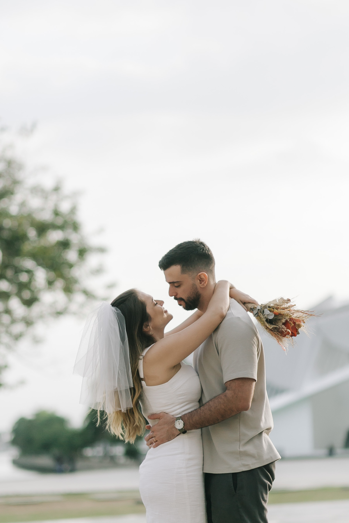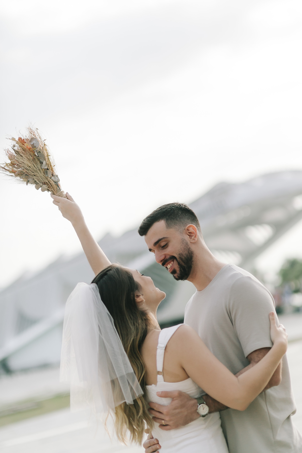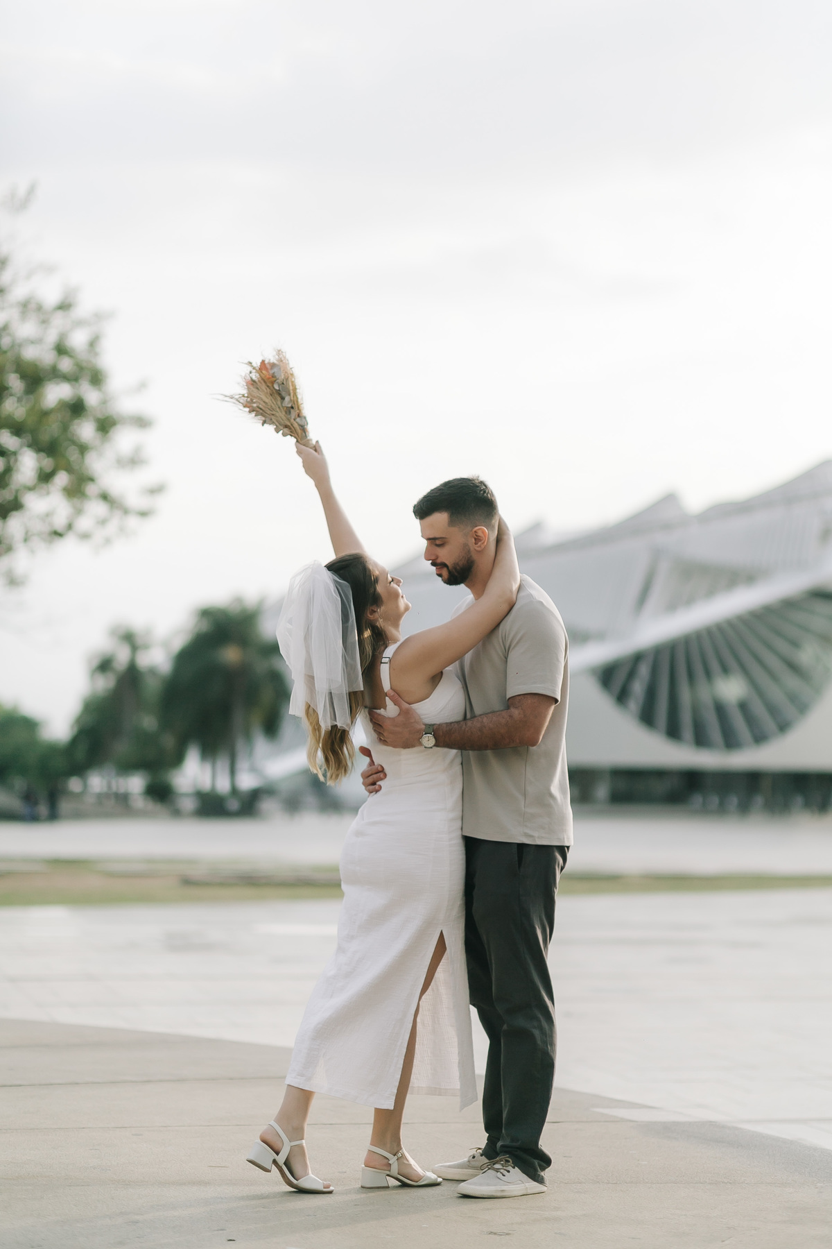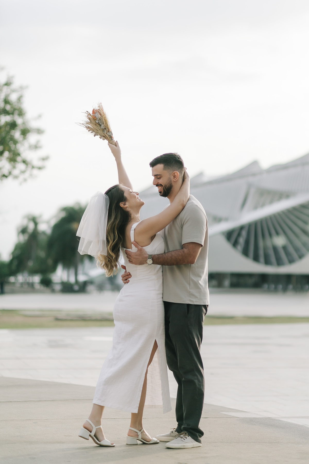 Entre a arquitetura futurista do Museu do Amanhã e o charme da Zona Portuária, o amor deles ganhou forma em cada sorriso e abraço compartilhado. Um ensaio cheio de leveza, cumplicidade e afeto — daqueles em que o casal vive cada clique com verdade e entrega. E no meio de tudo isso, a Dori, com toda sua doçura, completou a cena com o amor mais puro e simples de todos.
